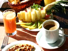 Você saboreia um delicioso café da manhã oferecido aos nossos hóspedes como cortesia. Iniciando às 6:00 h. e encerrando às 9:00 h., servimos frutas, café, leite, chá, chocolate, biscoitos, frios, pão, torradas, géleias e sucos.